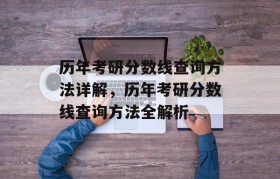 本文详解了历年考研分数线的查询方法,包括通过官方网站、各大教育机构、高校研究生院等途径进行查询,同时...