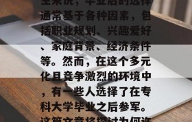 我们需要了解什么是专科大学生和普通高校毕业生之间的区别,专科大学生指的是毕业于专科学校或应用技术学院...