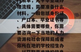 大学毕业后应办理的证件清单,大学毕业证办理流程,需要准备什么材料,一般包括身份证、户口本、毕业证书等。具体需要哪些,你需要咨询一下当地的人力资源和社会保障局或者你所在地的学校招生办,以获取最准确的信息。