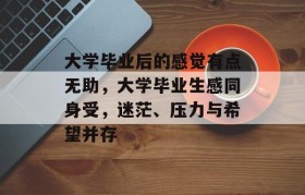作为一名大学生,毕业后感到无助是一种普遍的现象,在人生的这个阶段,我们被赋予了知识和技能,但却面临着...