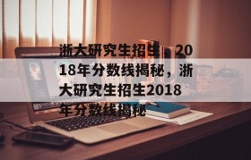 2018年浙大研究生招生分数线揭秘,该年研究生招生竞争激烈,各专业分数线普遍有所提高。热门专业如计算...