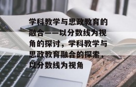 摘要:,,本文探讨了学科教学与思政教育的融合问题,以分数线为视角进行探讨。文章指出,在当今教育背景下...