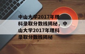 中山大学2017年理科录取分数线揭秘,该年理科录取分数线备受关注。据悉,该校理科录取分数线根据不同省...