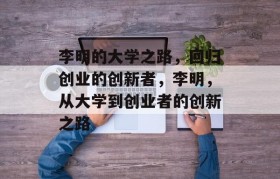 李明是一位年轻的创业者,他在大学毕业后选择回到了家乡,以他的知识和热情,开启了一段全新的创业旅程,李...