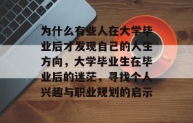 人们常常在大学毕业之后突然发现自己的人生方向并不清晰,这是因为,大学生活虽然提供了丰富的学习资源和社...