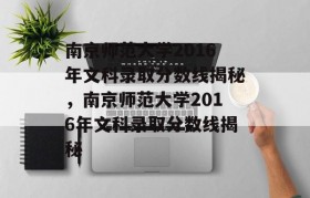 南京师范大学2016年文科录取分数线揭秘,该年度文科录取分数线因专业、省份、批次等因素而异。热门专业...