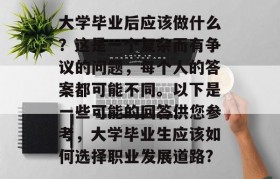 大学毕业后应该做什么?这是一个复杂而有争议的问题,每个人的答案都可能不同。以下是一些可能的回答供您参考,大学毕业生应该如何选择职业发展道路?