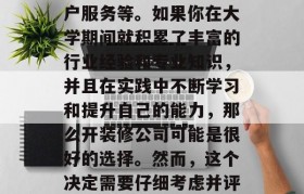 在这个竞争激烈的市场环境下,许多人可能会对大学毕业后选择开装修公司感到困惑,这个决定是否明智呢?答案...