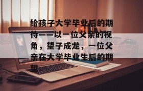 给孩子大学毕业后的期待——以一位父亲的视角,望子成龙,一位父亲在大学毕业生后的期望