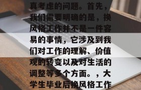 大学毕业后如何换风格工作?这是一个需要认真考虑的问题。首先,我们需要明确的是,换风格工作并不是一件容易的事情,它涉及到我们对工作的理解、价值观的转变以及对生活的调整等多个方面。,大学生毕业后换风格工作,从想法到行动的转变过程