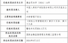 9月25日金融一线消息,国家金融监督管理总局遵义监管分局行政处罚信息公开表显示,中国人寿财产保险...