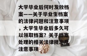 大学毕业后何时发放档案——关于毕业生档案的法律问题和注意事项,大学生毕业后多久可以领取档案?关于档案处理的相关法律规定及注意事项