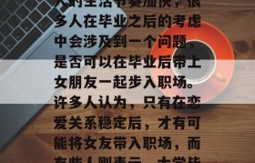 大学毕业后是否能带着女朋友去工作?这是一个常见且有趣的问题。随着社会的发展和年轻人的生活节奏加快,很多人在毕业之后的考虑中会涉及到一个问题,是否可以在毕业后带上女朋友一起步入职场。许多人认为,只有在恋爱关系稳定后,才有可能将女友带入职场,而有些人则表示,大学毕业后就可以带着女朋友一起去工作。,大学毕业之后可以带着女朋友去工作吗?