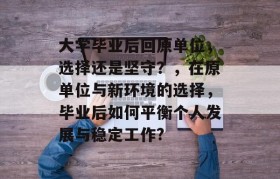 大学毕业后回原单位,选择还是坚守?,在原单位与新环境的选择,毕业后如何平衡个人发展与稳定工作?