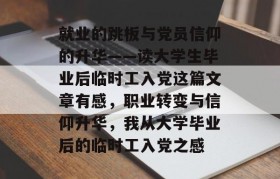 就业的跳板与党员信仰的升华——读大学生毕业后临时工入党这篇文章有感,职业转变与信仰升华,我从大学毕业后的临时工入党之感
