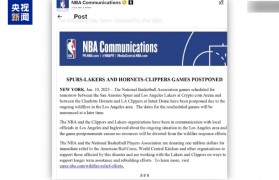 当地时间11日,美国职业篮球联赛表示,由于山火火情严峻,原定于当天举行的洛杉矶湖人队和洛杉矶快船...