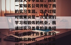 工作历练与毕业后的经历在大学毕业后,我在一家知名公司开始了我的实习生涯。这个过程对我来说是一次宝贵的学习和锻炼的机会,我通过实习盖章的亲身经历,收获了许多宝贵的经验和教训。,从学生到实习生,我的工作历练与毕业后的经历