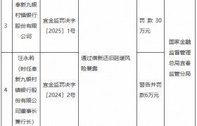 1月17日金融一线消息,国家金融监督管理总局宜春监管分局行政处罚信息公开表显示,奉新九银村镇银行...