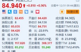 格隆汇12月31日|阿里巴巴(BABA.US 涨近1%,报84.94美元。消息面上,继5月和9月两次...
