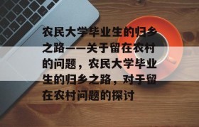 农民大学毕业生的归乡之路——关于留在农村的问题,农民大学毕业生的归乡之路,对于留在农村问题的探讨