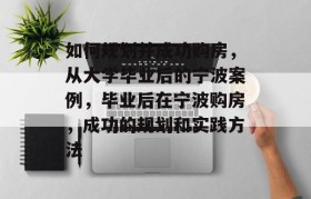 在现代社会中,大学生们往往面临着一个挑战,那就是毕业后需要决定是否要在宁波买房,这不仅涉及到个人的财...