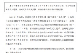 财联社1月26日讯(记者 梁柯志)今日傍晚,浙商银行发布公告称,已收到《国家金融监督管理总局关于...
