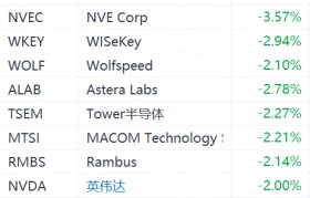 半导体股集体下跌:ARM跌超6%,美光科技跌超4%,英伟达跌2%