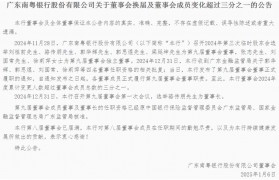 蓝鲸新闻1月8日讯(记者 金磊)近日广东南粤银行官网发布的公告显示,该行已完成董事会换届,其中董...
