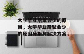 大学生活结束后,人们最期待的就是回到曾经的校园与老同学相聚,如今社会竞争激烈,人们的生活节奏加快,工...