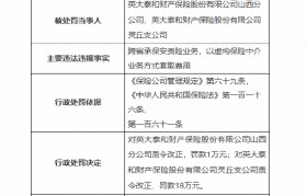 1月3日金融一线消息,国家金融监督管理总局山西监管局行政处罚信息公开表显示,英大泰和财产保险股份...