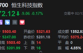 2月13日消息,恒生科技指数转跌,此前一度涨超4%,成分股中,比亚迪电子跌超7%,小米集团跌近5...
