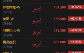2月13日消息,港股科网股持续冲高,快手大涨逾12%,百度涨超9%,美团涨超5%,阿里巴巴涨近5...