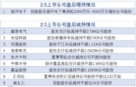 据统计,2月5日盘后,银河电子披露拟增持情况。包括摩恩电气、长信科技、恒通股份、海泰新光、东方中...