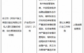 2月8日金融一线消息,国家金融监督管理总局上海监管局行政处罚信息公开表显示,徐卫东(时任中国工商...