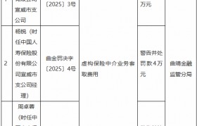 2月8日金融一线消息,曲靖金融监管分局行政处罚信息公示表显示,中国人寿保险股份有限公司宣威市支公...