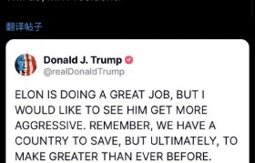 特朗普22日在Truth Social上发文表示:“埃隆(马斯克)做得很好,但我希望他能更积极进...