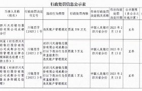 2月21日金融一线消息,中国人民银行四川省分行行政处罚信息公示表显示,四川天府银行股份有限公司成...