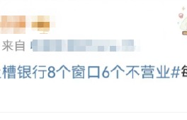 2月20日金融一线消息,“西安女子吐槽银行8个窗口6个不营业”话题登上微博热搜,引发网友热议。...