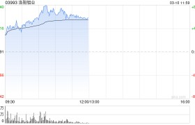 洛阳钼业(03993)股价上涨7.45%,现报6.35港元,成交额7.02亿港元。 洛阳钼...