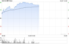乳业股早盘涨幅居前,蒙牛乳业(02319)上涨7.37%,报19.82港元;优然牧业(0985...