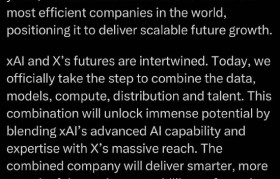 亿万富翁埃隆·马斯克表示,他的人工智能初创公司xAI收购了X平台,这为这家前身为推特的社交网络公...
