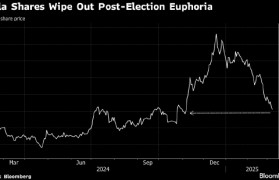 特斯拉公司股价周五下跌,已回吐美国大选日以来的涨幅,经历一场史诗级的折返跑。 11月5日美国...