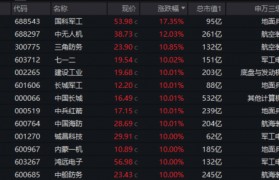关税扰动背景下,国防军工“利刃出鞘”,强势领涨全市场!中证军工指数十余只成份股涨超10%,国科军...