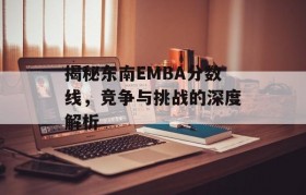东南EMBA分数线:竞争与挑战的深度解读在当今商业世界中,EMBA(高级工商管理硕士)学位已成为众多...
