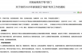 4月12日,河南省商务厅等7部门发布《关于做好2025年家装厨卫“焕新”有关工作的通知》。 ...