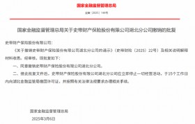4月14日金融一线消息,国家金融监管总局发布关于史带财产保险股份有限公司湖北分公司撤销的批复,同...