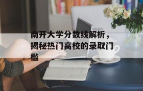 随着高考的临近,广大考生和家长都开始关注各大高校的分数线情况,作为我国著名的高等学府之一,南开大学一...