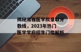 随着社会对医学人才的渴求,医学专业一直是考生和家长关注的焦点,而湘雅医学院作为中国医学教育的佼佼者,...