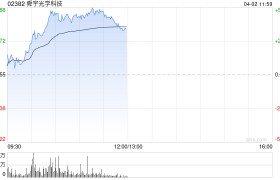 苹果概念股早盘走高,舜宇光学(02382)上涨4.07%,报75.50港元;丘钛科技(0147...