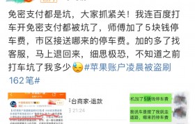 今天 #苹果账户凌晨被盗刷162笔# 登上社交媒体热搜 一位消费者 在凌晨2:5...